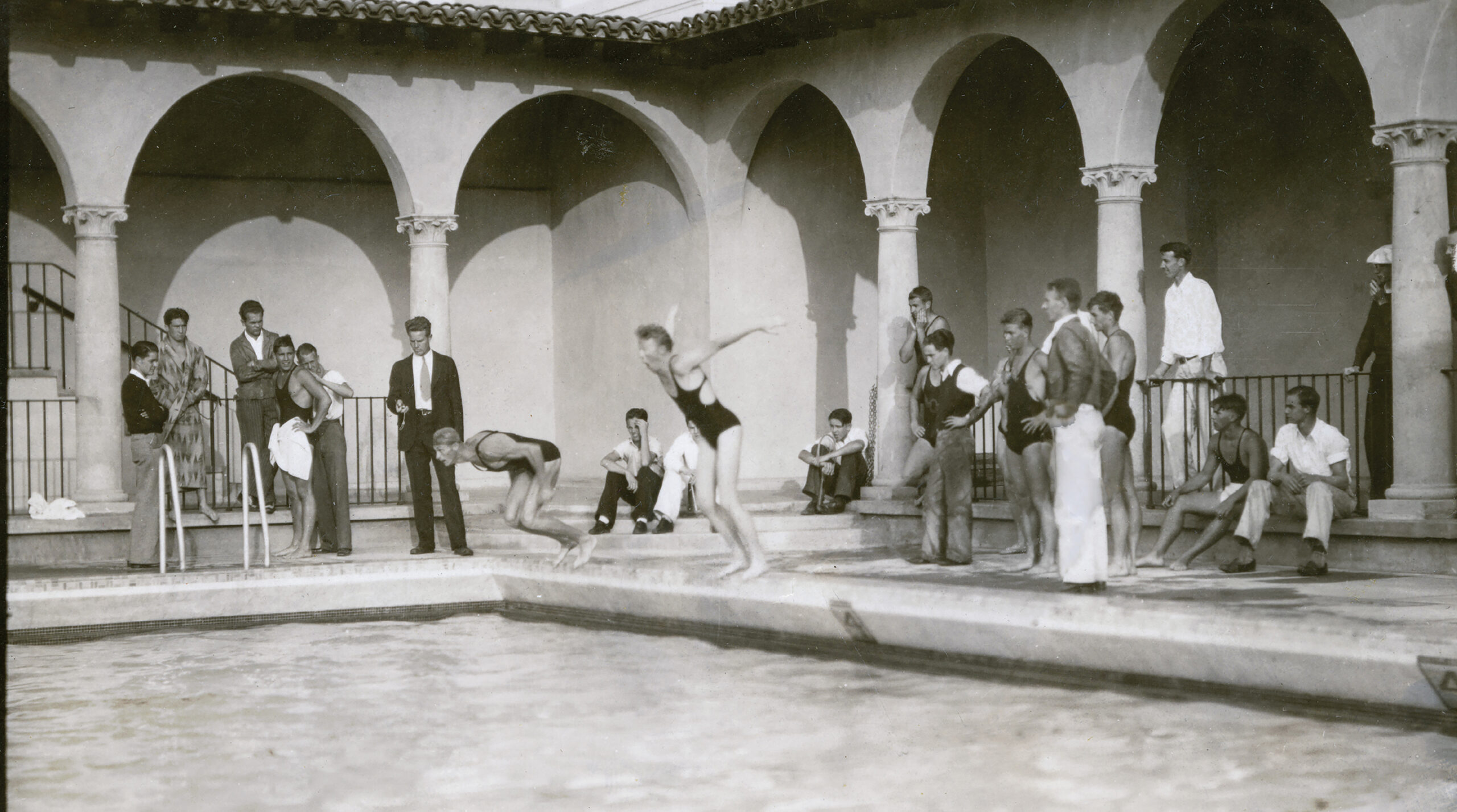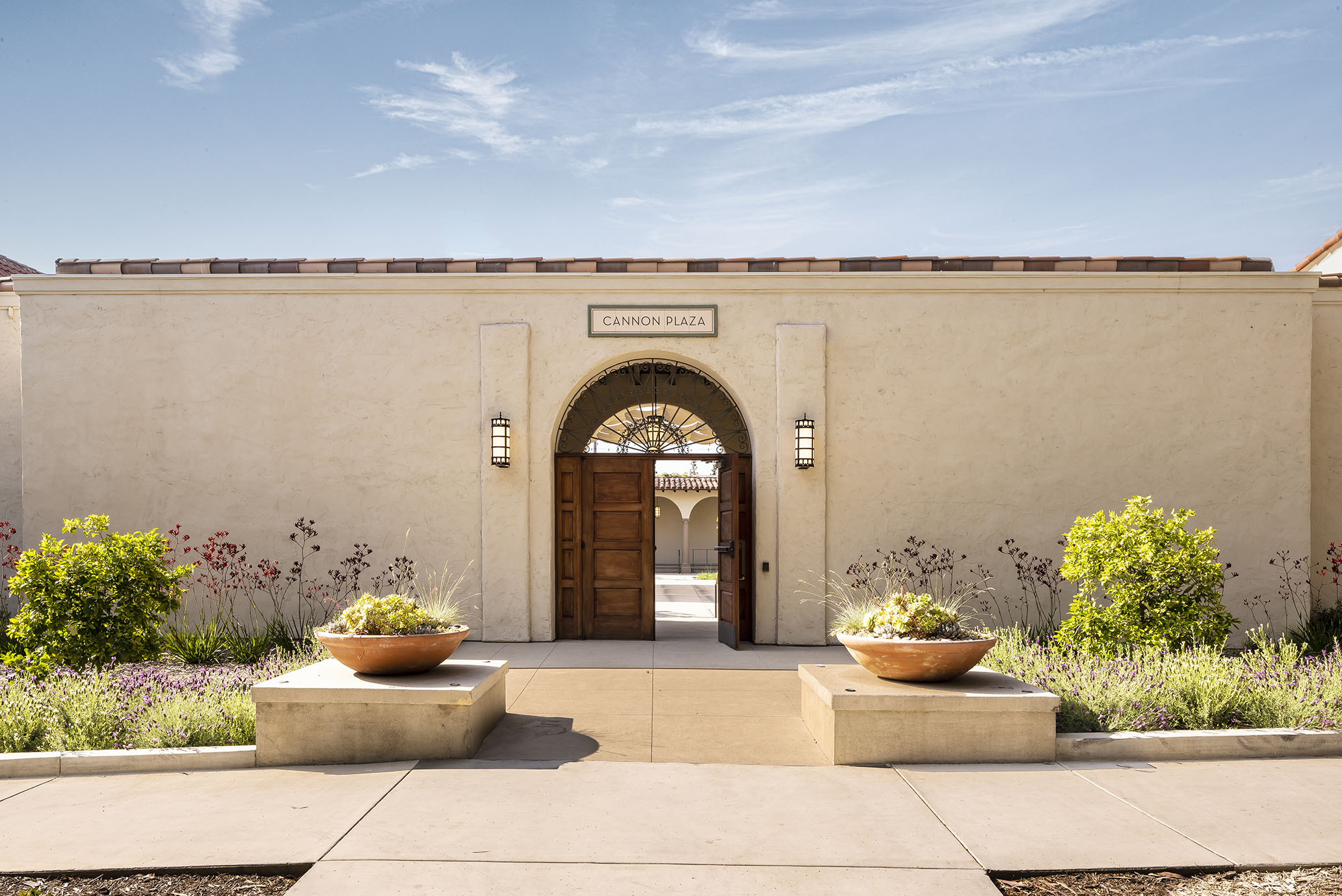 Historically used as Occidental College's Taylor Pool, Cannon Plaza was designed by preeminent architect Myron Hunt and opened for use in 1930. The building's design emulated an Italian Renaissance Revival cloister surrounding an Olympic sized swimming pool for student use. A renovation by architects Neptune & Thomas in 1971 resulted in some alterations to the building, most notable a new pent roof and exterior colonnade at the primary south façade.
